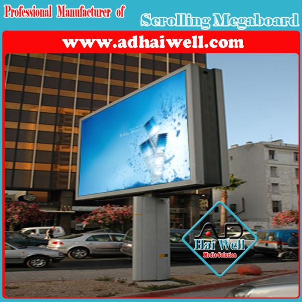 Adhaiwell is China scrolling megaboard and mega billbaords and mega box and mega advertising billboard sign manufacturer. This advertising media is used in airports, stations, supermarkets, shopping malls, entertainment place, golf course, office building and some other place for advertising plaza.